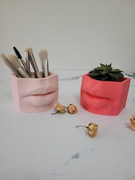 • שפתיים העשויות מ- Jesmonite AC 100. ניתן להשתמש לצרכים שונים, כגון אדנית, נרות, אחסון לכלי איפור ועוד.
