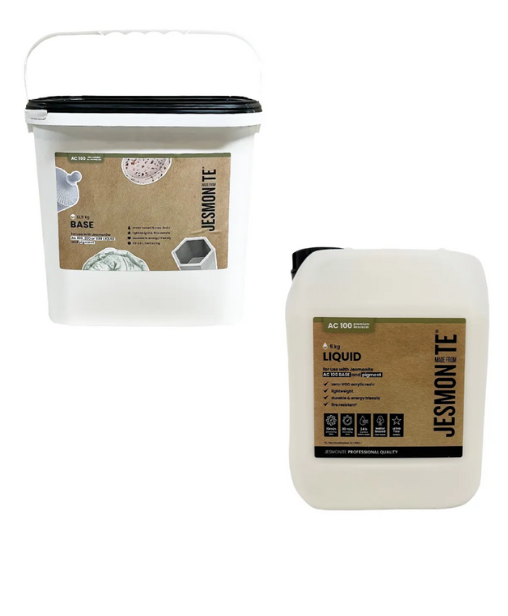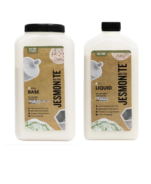 JESMONITE AC 100 הינו גבס חזק על בסיס מים. מיועד ליצור מוצר גבס חזק וקל משקל. ניתן ליישם ביציקה או בשילוב עם בד זכוכית על מנת ליצור מוצר דק וקל משקל. גבס AC 100 מגיע כחומר דו רכיבי בסיס ומקשה, לא מוסיפים מים אלא מקשה על בסיס מים.