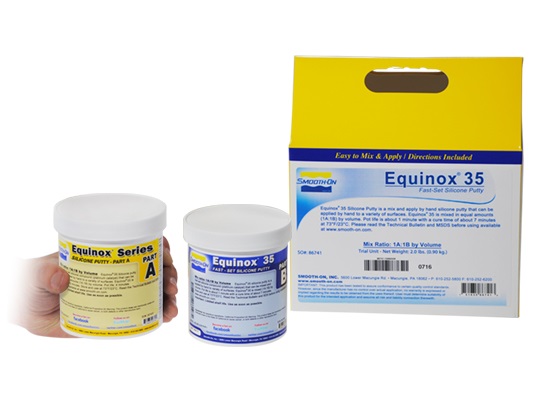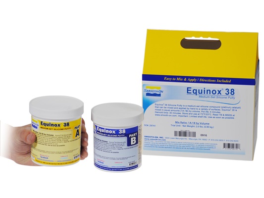 סיליקון דו קומפוננטי דמוי פלסטלינה בשור: A35,A40,הניתן ללוש אותו ביד ולהדק אותו כנגד המודל. יחס ערבוב נוח 1:1, ההתקשות תוך דקות וחוזק הקריעה מצויין. שימושים: תבניות מהירות לכמעט כל שטח פנים, תכשיטים, תיקון מסגרות של תמונות ועוד ... ניתן להשתמש בסיליקון זה כתבנית למגע עם מזון. האישור הוא אישור אמריקאי ולא ישראלי- יש לחשוף את החומר ל 150 מעלות למשך 5 דקות לאחר ההתקשות! ניתן לבחור בין 3 אפשרויות: 1. EQUINOX 40 - זמן עבודה של 30 דקות, התקשות כ 5 שעות. 2. EQUINOX 38 - זמן עבודה של 4 דקות ה