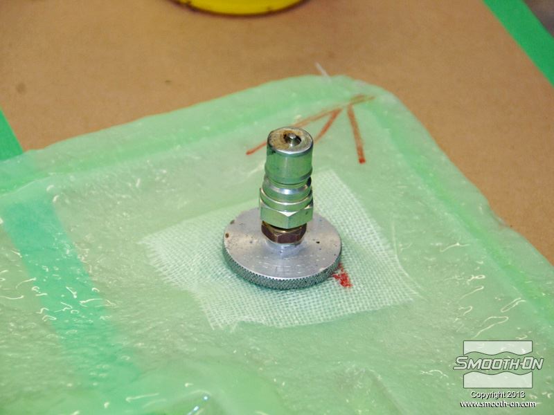 לחיצה להגדלת תמונה התבנית נשארת תחת הלחץ של הואקוםעל מנת לשחרר את כל האוויר מהחלק.  נותנים לאפוקסי להתמצק תוך כדי הפעלת הואקום כדי למנוע פגמים בחלק. התבנית נשארת תחת הלחץ של הואקוםעל מנת לשחרר את כל האוויר מהחלק. נותנים לאפוקסי להתמצק תוך כדי הפעלת הואקום כדי למנוע פגמים בחלק.