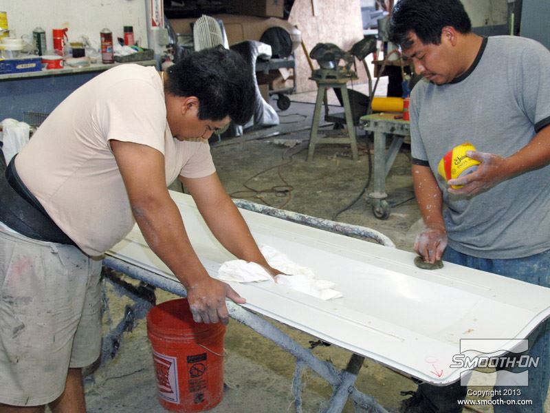 לחיצה להגדלת תמונה מורחים חומר הפרדה על פני התבנית. לפני הכנת החלק יש גם לנקות ולהבריק את התבנית. כך גימור החלק יהיה מבריק ביותר. מורחים חומר הפרדה על פני התבנית. לפני הכנת החלק יש גם לנקות ולהבריק את התבנית. כך גימור החלק יהיה מבריק ביותר.