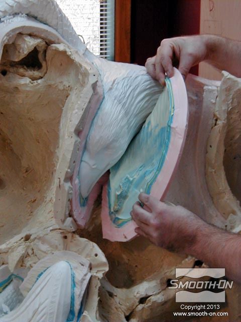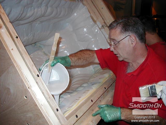 לחיצה להגדלת תמונה מורחים שכבה שלישית של סיליקון RTV לתבניות Mold Max® 10. מורחים שכבה שלישית של סיליקון RTV לתבניות Mold Max® 10.