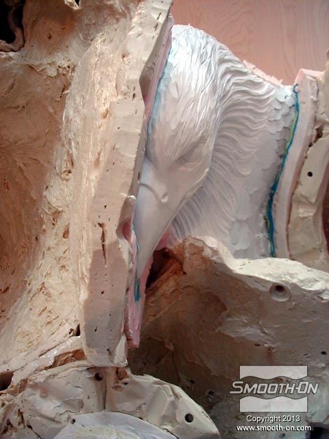 לחיצה להגדלת תמונה מבט מקרוב על החצי השמאלי של ראש הנשר בתבנית סיליקון RTV   . תמונה זו ממחישה אילו פרטים קטנים מסוגל סיליקון Mold Max® 10 להעתיק. מבט מקרוב על החצי השמאלי של ראש הנשר בתבנית סיליקון RTV . תמונה זו ממחישה אילו פרטים קטנים מסוגל סיליקון Mold Max® 10 להעתיק.