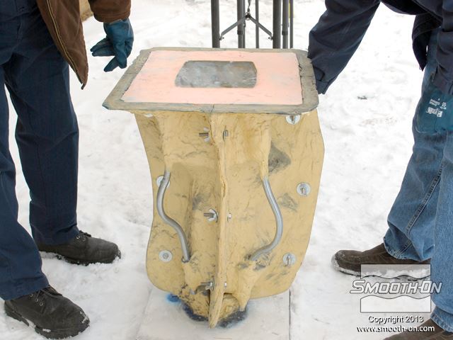 לחיצה להגדלת תמונה דרושים לפחות שני אנשים כדי להרים את התבנית והיציקה הכבדות. דרושים לפחות שני אנשים כדי להרים את התבנית והיציקה הכבדות.