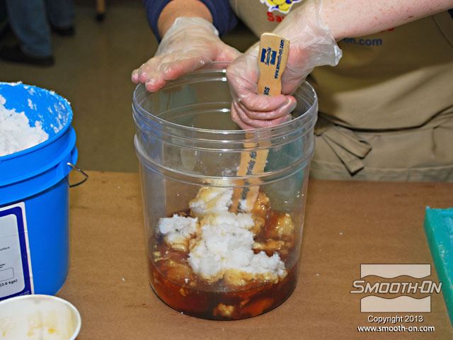 לחיצה להגדלת תמונה מורחים את ה פוליאוריתן מחוזק סיבים  Plasti-Paste® II על התבנית. מורחים את ה פוליאוריתן מחוזק סיבים Plasti-Paste® II על התבנית.