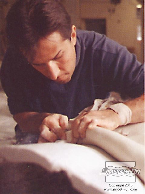 לחיצה להגדלת תמונה מורחים 5 שכבות של הגומי של Smooth-On כדי להעניק לתבנית חוזק. מורחים 5 שכבות של הגומי של Smooth-On כדי להעניק לתבנית חוזק.