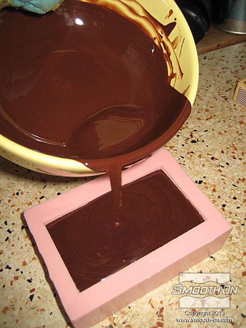לחיצה להגדלת תמונה שופכים לאט את השוקולד המותך אל תבנית ה סיליקון למזון Smooth-Sil 940. שופכים לאט את השוקולד המותך אל תבנית ה סיליקון למזון Smooth-Sil 940.