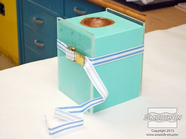 לחיצה להגדלת תמונה משתמשים ברצועת על מנת  לאבטח את תבנית הסיליקון הזמן היציקה. משתמשים ברצועת על מנת לאבטח את תבנית הסיליקון הזמן היציקה.