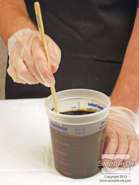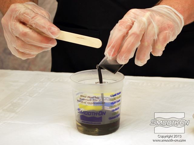 לחיצה להגדלת תמונה שופכים אל המיכל גם את מקשה הSmooth-Cast® 325 הצבוע. שופכים אל המיכל גם את מקשה הSmooth-Cast® 325 הצבוע.