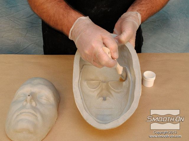 לחיצה להגדלת תמונה מורחים בעזרת מברשת שכבה של Dragon Skin® FX-Pro על גם על חצי התבנית השלילי. מורחים בעזרת מברשת שכבה של Dragon Skin® FX-Pro על גם על חצי התבנית השלילי.