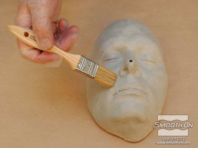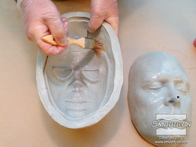 לחיצה להגדלת תמונה מורחים בעזרת מברשת שכבה של Dragon Skin® FX-Pro על חצי התבנית החיובי. מורחים בעזרת מברשת שכבה של Dragon Skin® FX-Pro על חצי התבנית החיובי.