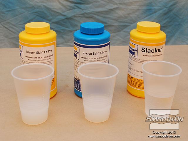 לחיצה להגדלת תמונה שילוב של 50 גרם בסיס סיליקון Dragon Skin® FX-Pro, עם 50 גרם של מקשה Dragon Skin® FX-Pro ו100 גרם של חומר מרכך SLACKER כדי להכין את ג'ל הסיליקון הרך (יחס ערבוב 1A:1B:2SLACKER לפי משקל). שילוב של 50 גרם בסיס סיליקון Dragon Skin® FX-Pro, עם 50 גרם של מקשה Dragon Skin® FX-Pro ו100 גרם של חומר מרכך SLACKER כדי להכין את ג'ל הסיליקון הרך (יחס ערבוב 1A:1B:2SLACKER לפי משקל).