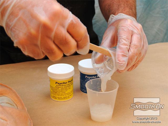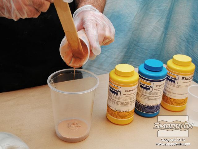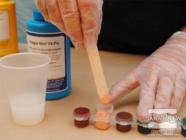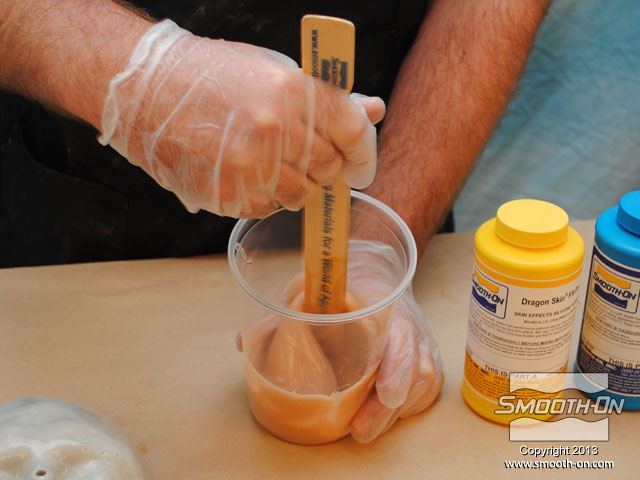 לחיצה להגדלת תמונה מערבבים את פיגמנט הSilc Pig® Fleshtone עם חלק המקשה של סיליקון ליציקה Dragon Skin® FX-Pro. מערבבים את פיגמנט הSilc Pig® Fleshtone עם חלק המקשה של סיליקון ליציקה Dragon Skin® FX-Pro.