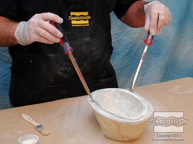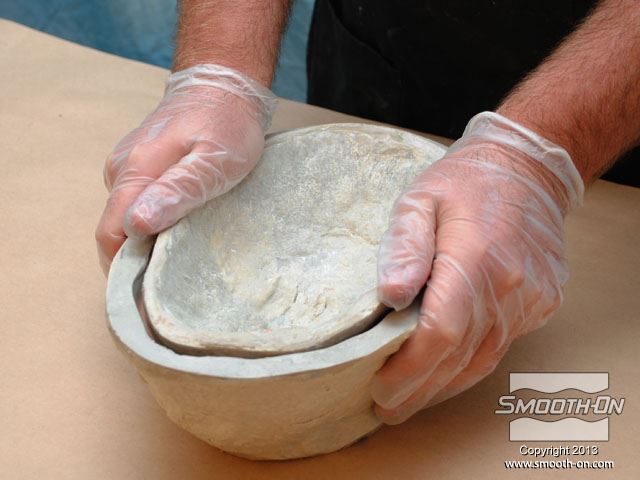 לחיצה להגדלת תמונה מפרידים את חצי התבנית לאט ומורחים עוד מעט טלק כדי להקל על התהליך. מפרידים את חצי התבנית לאט ומורחים עוד מעט טלק כדי להקל על התהליך.