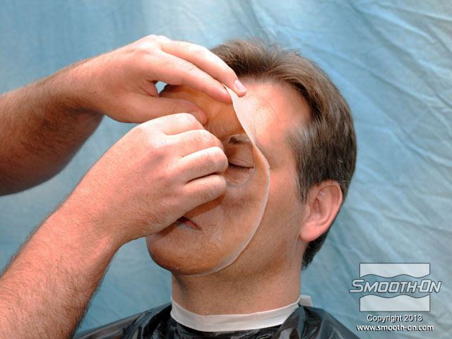 לחיצה להגדלת תמונה כאשר הSkin Tite מקבל מרקם דביק (Tacky) מניחים את מסיכת הסיליקון במקומה על פני המודל. כאשר הSkin Tite מקבל מרקם דביק (Tacky) מניחים את מסיכת הסיליקון במקומה על פני המודל.