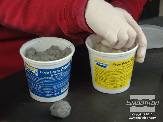 לחיצה להגדלת תמונה לוקחים כמות שווה של בסיס ומקשה של ה  חימר לפיסול על בסיס אפוקסי  ]Free Form® Earth . לוקחים כמות שווה של בסיס ומקשה של ה חימר לפיסול על בסיס אפוקסי ]Free Form® Earth .