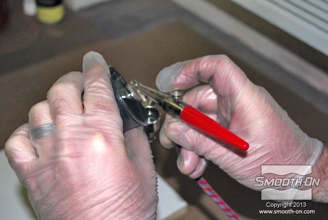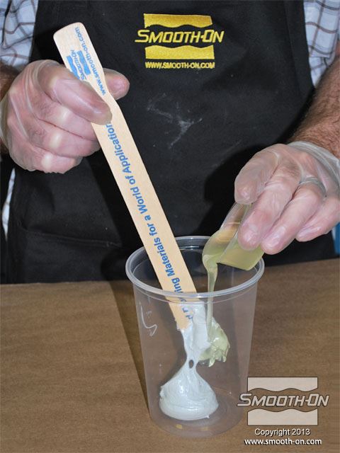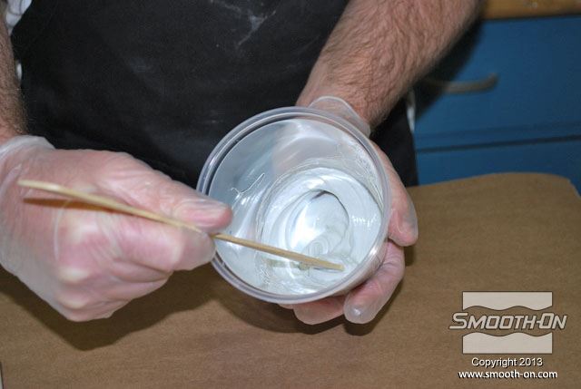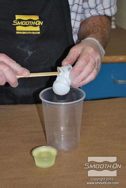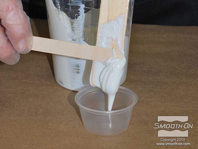 לחיצה להגדלת תמונה בזמן שזמן העבודה של החומר עוד לא חלף, מעבירים לכוס נוספת כמות קטנה של פוליאורתן Brush On מעורבב. בזמן שזמן העבודה של החומר עוד לא חלף, מעבירים לכוס נוספת כמות קטנה של פוליאורתן Brush On מעורבב.