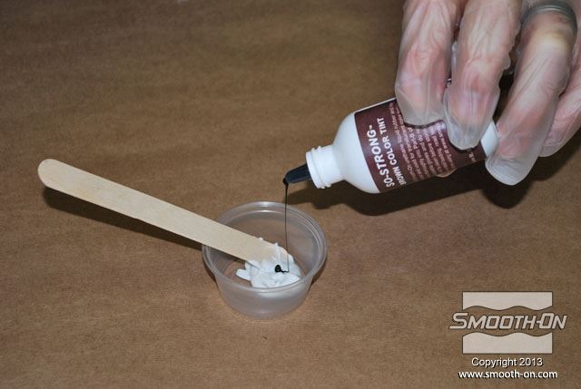 לחיצה להגדלת תמונה מוסיפים לחומר בכוס הקטנה מעט פיגמנט חום. מוסיפים לחומר בכוס הקטנה מעט פיגמנט חום.