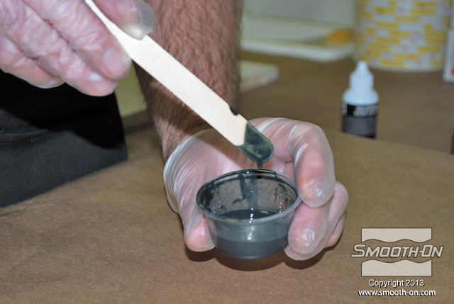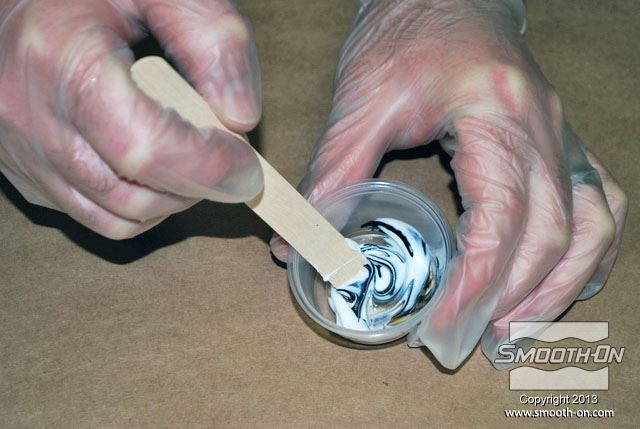 לחיצה להגדלת תמונה מערבבים ביסודיות את החומר עם הפיגמנטים. מערבבים ביסודיות את החומר עם הפיגמנטים.