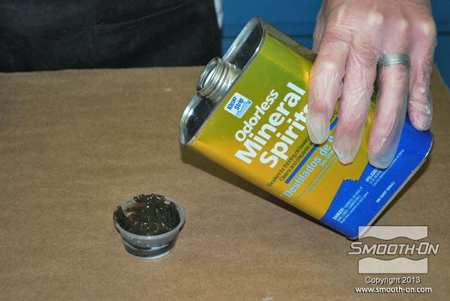 לחיצה להגדלת תמונה מוסיפים כמות קטנה של טרפנטין כדי לדלל את גומי הפוליאורתן. מוסיפים כמות קטנה של טרפנטין כדי לדלל את גומי הפוליאורתן.