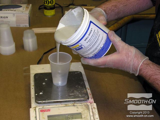 לחיצה להגדלת תמונה מודדים ומערבבים מנה שלישית של פוליאורתן Shell Shock. מודדים ומערבבים מנה שלישית של פוליאורתן Shell Shock.