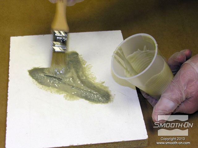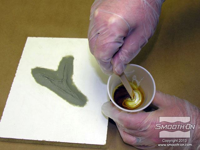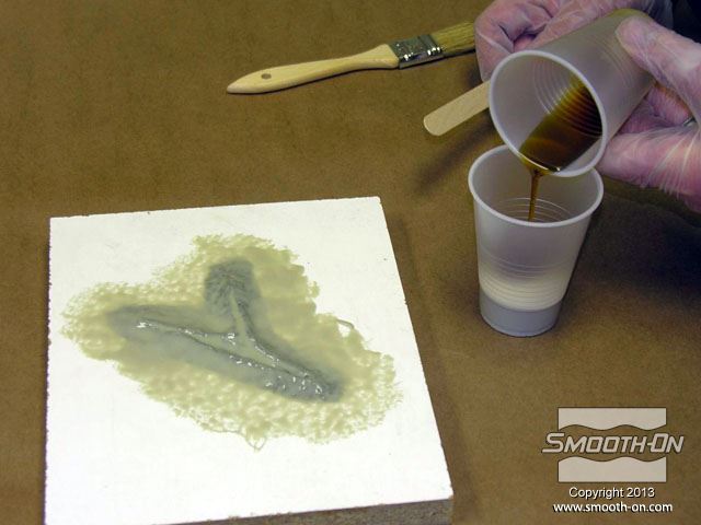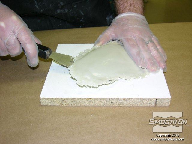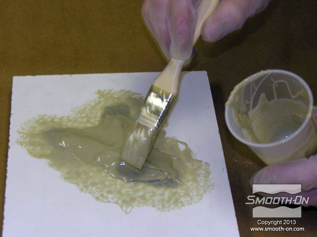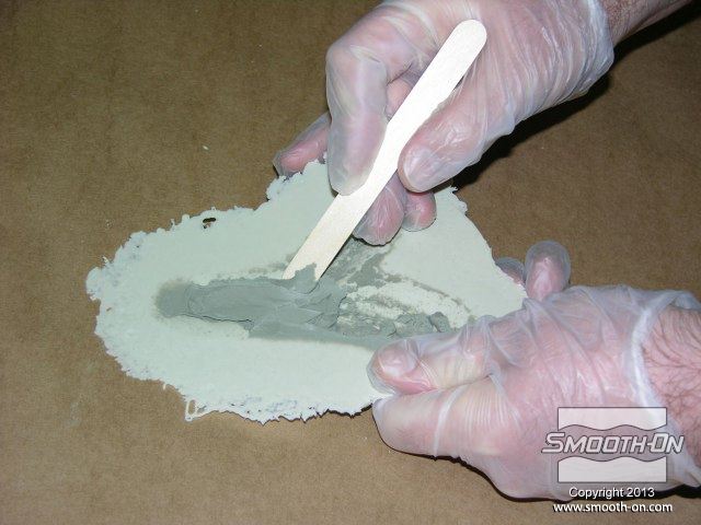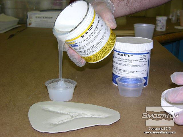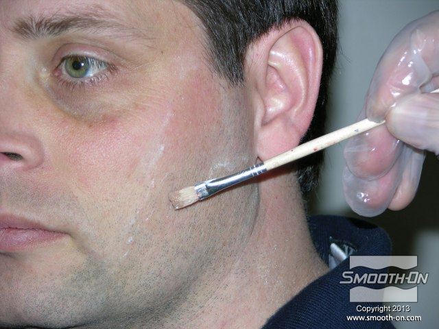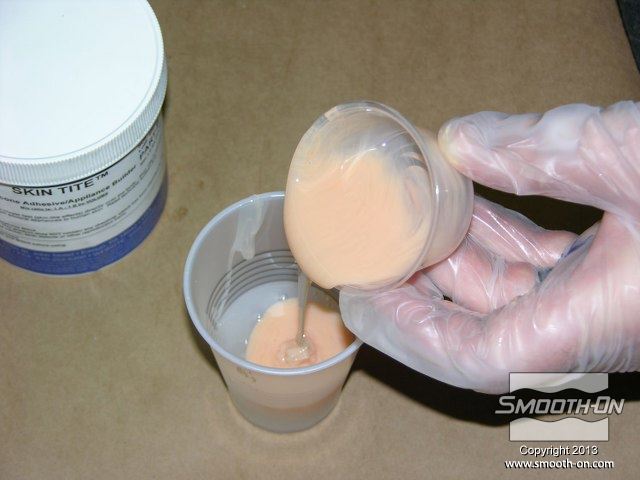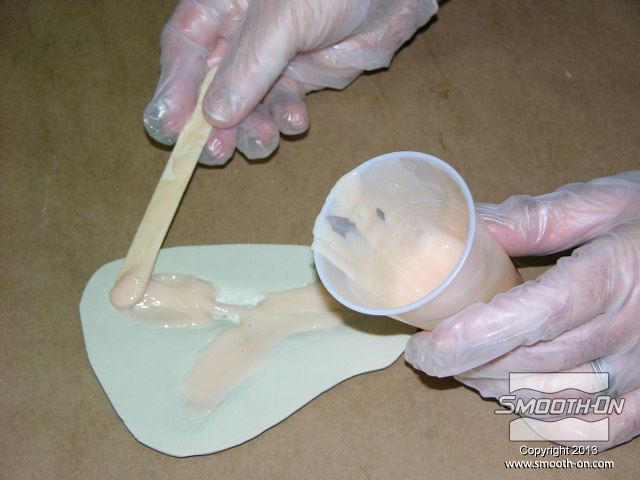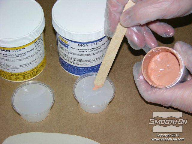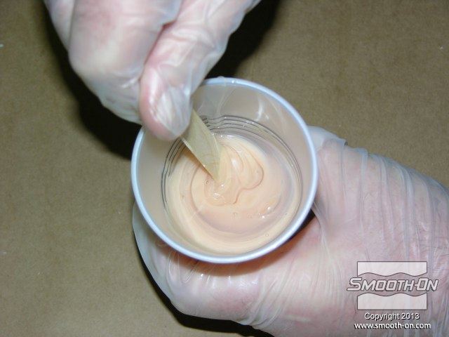 לחיצה להגדלת תמונה מערבבים מעט סיליקון Skin Tite ומורחים על פני המודל. מערבבים מעט סיליקון Skin Tite ומורחים על פני המודל.