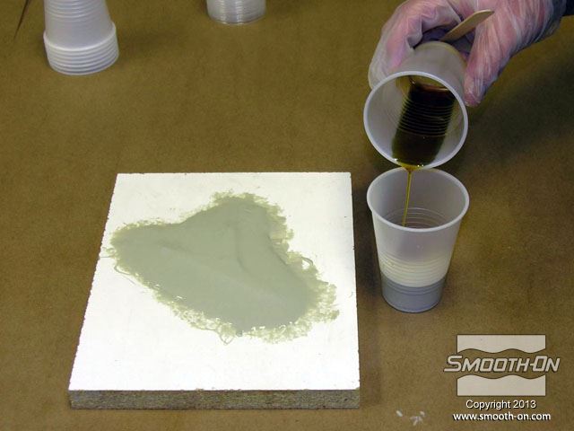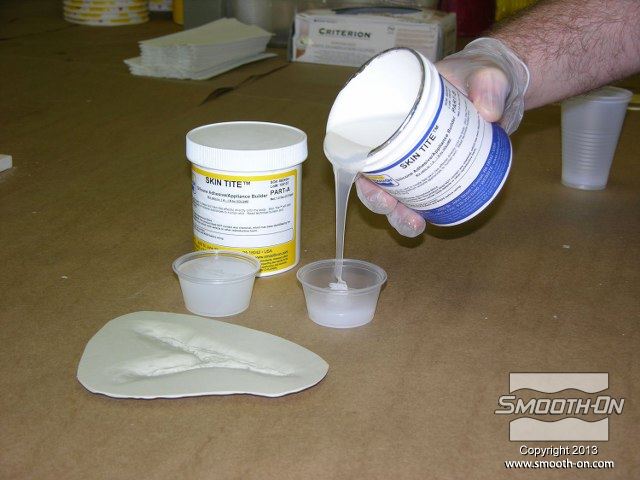 לחיצה להגדלת תמונה לאחר שמשייפים ומחליקים את קצוות התבנית, מודדים את הבסיס של סיליקון למריחה Skin Tite (יחס ערבוב 1:1 לפי נפח). לאחר שמשייפים ומחליקים את קצוות התבנית, מודדים את הבסיס של סיליקון למריחה Skin Tite (יחס ערבוב 1:1 לפי נפח).