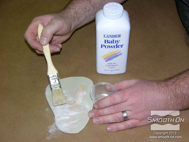 לחיצה להגדלת תמונה לאחר 10 דקות של התמצקות מורחים טלק על מודל הסיליקון Skin Tite. לאחר 10 דקות של התמצקות מורחים טלק על מודל הסיליקון Skin Tite.