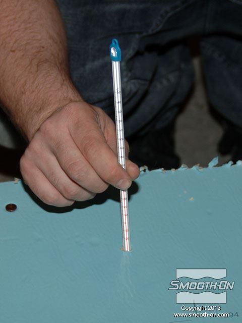 לחיצה להגדלת תמונה מודדים את הטמפרטורת בעזרת טרמומטר. הוראות להכנת קופסת החימום מופיעות בדף הטכני של Smooth-On. מודדים את הטמפרטורת בעזרת טרמומטר. הוראות להכנת קופסת החימום מופיעות בדף הטכני של Smooth-On.