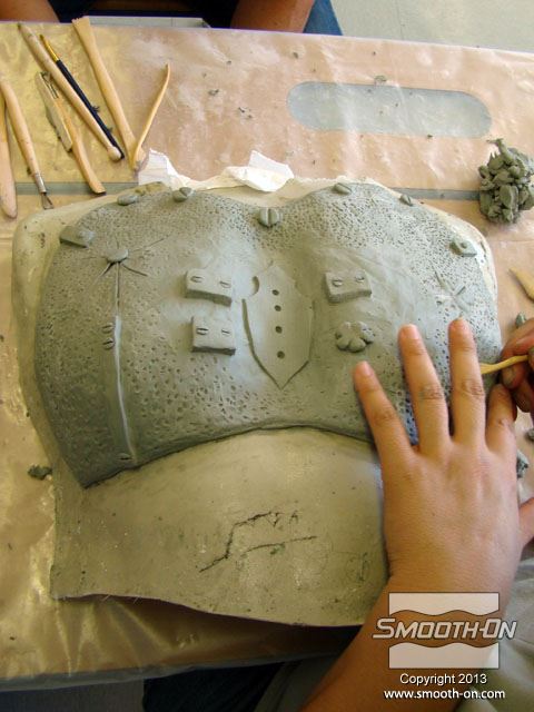 לחיצה להגדלת תמונה מפסלים על יציקת הגבס את פרטי השריון בעזרת חימר מעצבים על בסיס שמן LBT/NSP. מפסלים על יציקת הגבס את פרטי השריון בעזרת חימר מעצבים על בסיס שמן LBT/NSP.