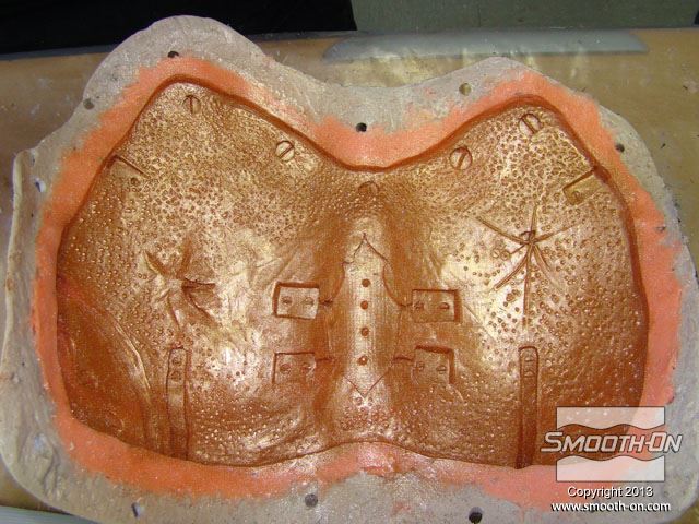 לחיצה להגדלת תמונה מורחים על החימר שכבה דקה של סיליקון למריחה  Rebound 25 כדי ליצור תבנית סיליקון במריחה. מורחים על החימר שכבה דקה של סיליקון למריחה Rebound 25 כדי ליצור תבנית סיליקון במריחה.