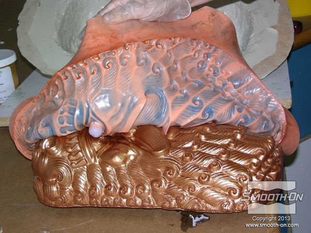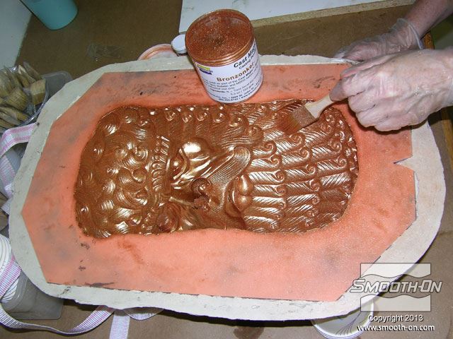 לחיצה להגדלת תמונה מורחים אבקת Cast Magic ברונזה על תבנית סיליקון למריחה Rebound 25 עם מעיל תמיכה מ פוליאוריתן קשיח Plasti-Paste. בליטות העיניים והנחיריים נעשו בקלות עם בצק סיליקון Equinox? מורחים אבקת Cast Magic ברונזה על תבנית סיליקון למריחה Rebound 25 עם מעיל תמיכה מ פוליאוריתן קשיח Plasti-Paste. בליטות העיניים והנחיריים נעשו בקלות עם בצק סיליקון Equinox?