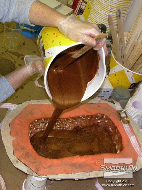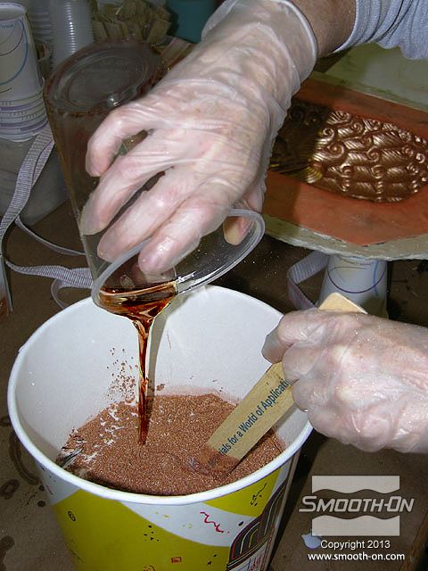 לחיצה להגדלת תמונה מוסיפים אבקת ברונזה Cast Magic לבסיס הפוליאוריתן Foam-iT ושופכים אל המקשה. מוסיפים אבקת ברונזה Cast Magic לבסיס הפוליאוריתן Foam-iT ושופכים אל המקשה.