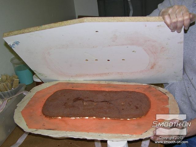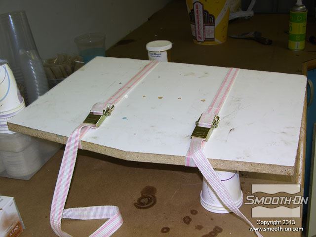 לחיצה להגדלת תמונה מורחים על קרש תמיכה עם מספר חורי אוורור חומר הפרדה על בסיס וקס Ease Release 2831, לאחר מכן, משתמשים ברצ'טים כדי לאטום את התבנית ולספק התנגדות להתפשטות הקצף. מורחים על קרש תמיכה עם מספר חורי אוורור חומר הפרדה על בסיס וקס Ease Release 2831, לאחר מכן, משתמשים ברצ'טים כדי לאטום את התבנית ולספק התנגדות להתפשטות הקצף.
