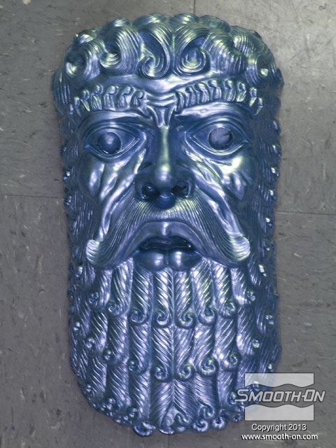 מורחים אבקת Cast Magic ברונזה על תבנית סיליקון למריחה Rebound 25 עם מעיל תמיכה מ פוליאוריתן קשיח Plasti-Paste. בליטות העיניים והנחיריים נעשו בקלות עם בצק סיליקון Equinox? מורחים ביסודיות את אבקת הברונזה על משטח התבנית תוך הקפדה על מריחת הפרטים העמוקים וצידי חלל התבנית. מודדים כמות שווה לפי נפח של בסיס ומקשה של פוליאוריטן מוקצף Foam-iT. מוסיפים פיגמנט אל קצף פוליאוריתן Foam iT!® 5 עם פגימנט לפוליאוריתן So-Strong חום. מוסיפים אבקת ברונזה Cast Magic לבסיס הפוליאוריתן Foam-iT ושופכים אל המקשה. מערבבים ביסודיות את כל המרכיבים. מקפידים לגרד את החומר מתחתית המיכל ומצדדיו. יוצקים את התערובת אל תבנית סיליקון Rebound 25. מורחים על קרש תמיכה עם מספר חורי אוורור חומר הפרדה על בסיס וקס Ease Release 2831, לאחר מכן, משתמשים ברצ'טים כדי לאטום את התבנית ולספק התנגדות להתפשטות הקצף. מניחים ל פולאוריטן מוקצף להתמצק במשך לפחות 30 דקות ואז מסירים את קרש התמיכה. מסירים את מעיל התמיכה מפוליאוריטן Plasti-Paste. כעת מורידים את תבנית הסיליקון Rebound 25 מהיציקה. יציקת פוליאורתן מוקצף Foam iT!® 5 בשילוב עם אפקט ברונזה Cast Magic Bronzonker לאפקט מתכתי, מוכנה לגמרי תוך דקות! יציקת קצף פוליאוריתן Foam iT!® 5 בשילוב עם אפקט זהב Cast Magig Goldfinger בצע זהב. יציקת קצף פוליאוריתן Foam iT!® 5 בשילוב עם אפקט מתכתי Cast Magig Pearly Blue בצע כחול מתכתי.