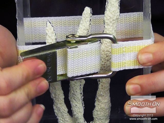 לחיצה להגדלת תמונה סוגרים את המסגרת גם בעזרת רצועה ניתנן להתאמה (ראצ'ט) כדי לסגור בחוזקה את קווי התפר ולנעול את התבנית. סוגרים את המסגרת גם בעזרת רצועה ניתנן להתאמה (ראצ'ט) כדי לסגור בחוזקה את קווי התפר ולנעול את התבנית.