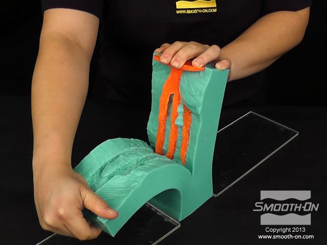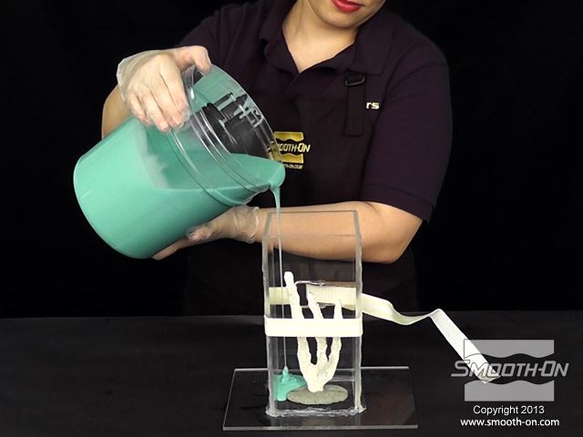 לחיצה להגדלת תמונה יוצקים את שרף הפוליאוריתן Smooth-Cast® 325 אל חלל התבנית. יוצקים את שרף הפוליאוריתן Smooth-Cast® 325 אל חלל התבנית.