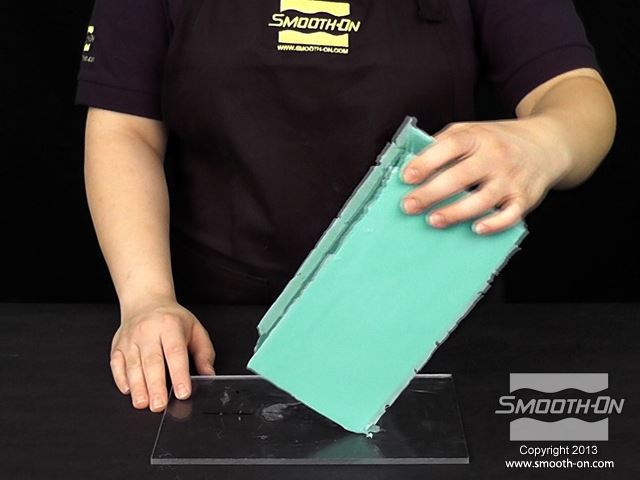 לחיצה להגדלת תמונה לאחר שהסיליקון Mold Star® 15 התמצק במשך 4 שעות, מסירים את לוחות המסגרת . לאחר שהסיליקון Mold Star® 15 התמצק במשך 4 שעות, מסירים את לוחות המסגרת .
