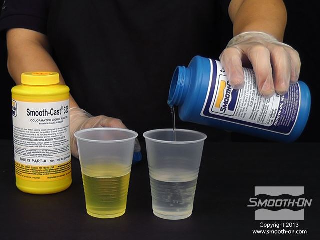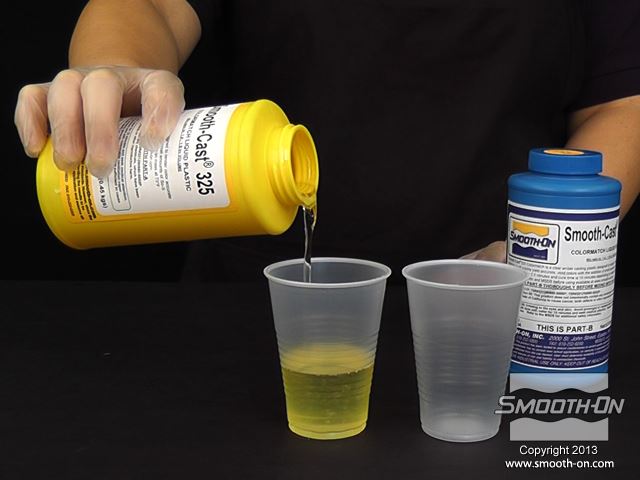 לחיצה להגדלת תמונה מודדים כמות שווה לפי נפח של המקשה של הפוליאורתן קשיח Smooth-Cast® 325. מודדים כמות שווה לפי נפח של המקשה של הפוליאורתן קשיח Smooth-Cast® 325.