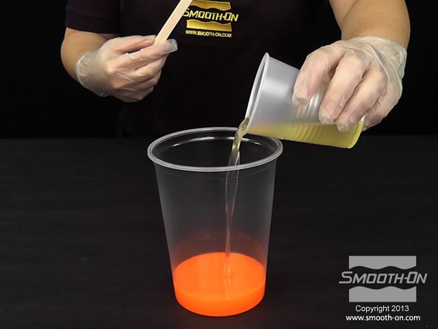 לחיצה להגדלת תמונה מעבירים את מקשה הפוליאוריתן הקשיח Smooth-Cast® 325 הצבוע למיכל ערבוב גדול יותר. מעבירים את מקשה הפוליאוריתן הקשיח Smooth-Cast® 325 הצבוע למיכל ערבוב גדול יותר.