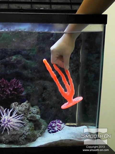 לחיצה להגדלת תמונה מניחים את יציקת אלמוג האצבעות באקווריום. הבסיס שבנינו מייצב את היציקה. מניחים את יציקת אלמוג האצבעות באקווריום. הבסיס שבנינו מייצב את היציקה.