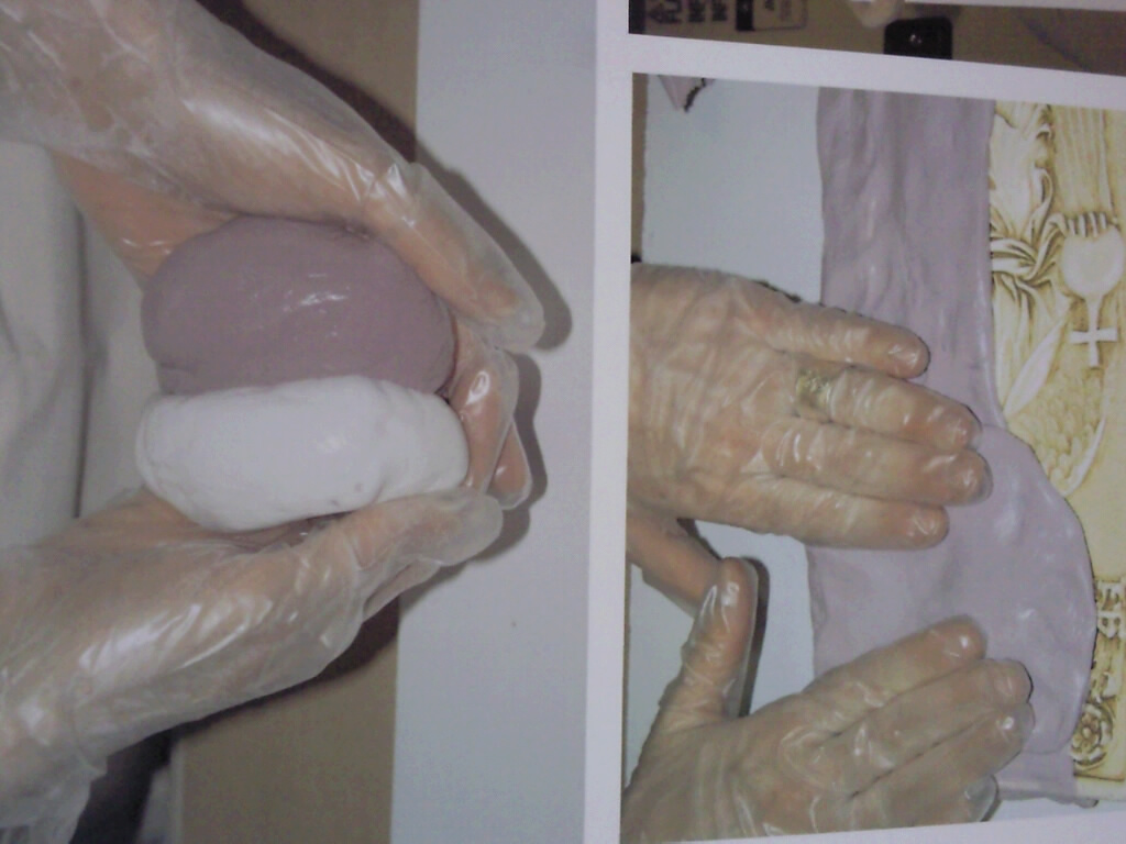 לחיצה להגדלת תמונה כדי להכין את התבנית משתמשים בבצק סיליקון Equinox® 40. יחס הערבוב של החומר הוא 1:1 לפי נפח. מכינים שתי מנות בנפח שווה של בצק סיליקון. משלבים את שתי חתיכות בצק הסיליקון על הלוח כך שיווצר משטח אחיד שיכסה את כל משטח העבודה. כדי להכין את התבנית משתמשים בבצק סיליקון Equinox® 40. יחס הערבוב של החומר הוא 1:1 לפי נפח. מכינים שתי מנות בנפח שווה של בצק סיליקון. משלבים את שתי חתיכות בצק הסיליקון על הלוח כך שיווצר משטח אחיד שיכסה את כל משטח העבודה.