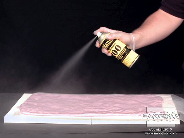 לחיצה להגדלת תמונה מרססים חומר הפרדה Ease Release 200 על כל משטח בצק הסיליקון Equinox® 40 כדי למנוע ממנו להידבק לעצמו. מרססים חומר הפרדה Ease Release 200 על כל משטח בצק הסיליקון Equinox® 40 כדי למנוע ממנו להידבק לעצמו.