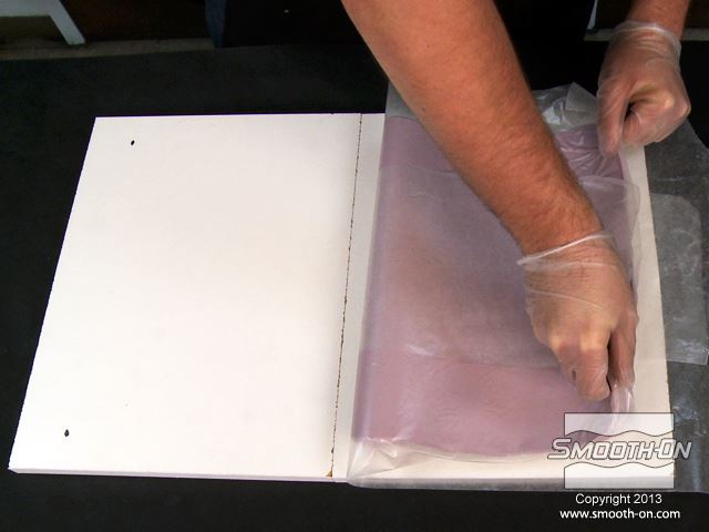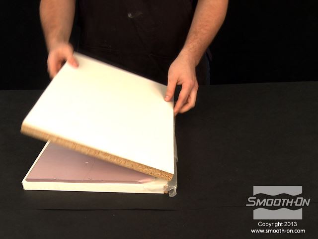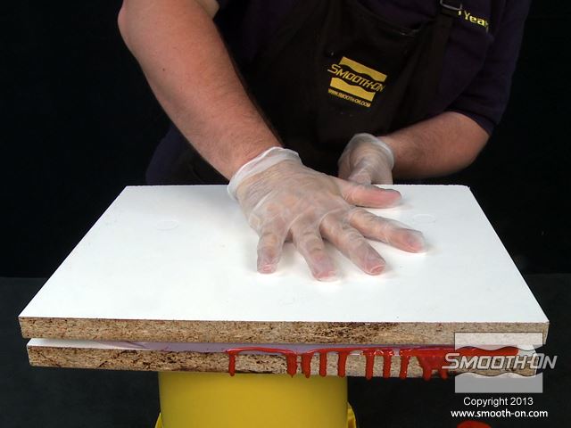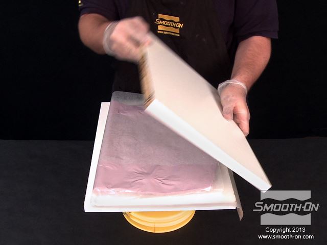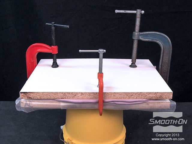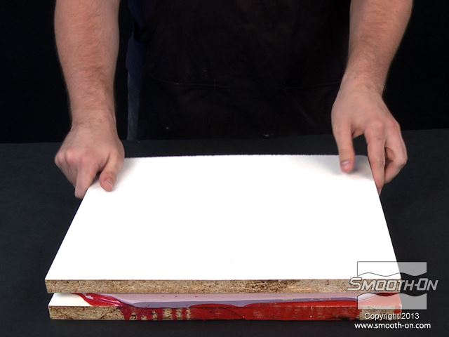 לחיצה להגדלת תמונה לאחר שהפוליאוריטן Smooth-Cast® 60D מתמצק לחלוטין, מסירים את המלחציים ומעבירים את הלוחות עם התבנית לשולחן עבודה שטוח. לאחר שהפוליאוריטן Smooth-Cast® 60D מתמצק לחלוטין, מסירים את המלחציים ומעבירים את הלוחות עם התבנית לשולחן עבודה שטוח.