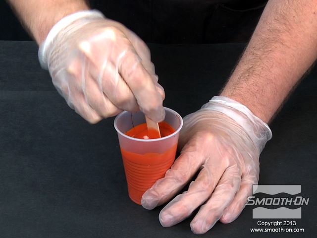 לחיצה להגדלת תמונה מוסיפים למקשה האדום לבן את בסיס הפוליאוריתן Smooth-Cast® 60D ומערבבים ביסודיות. מוסיפים למקשה האדום לבן את בסיס הפוליאוריתן Smooth-Cast® 60D ומערבבים ביסודיות.