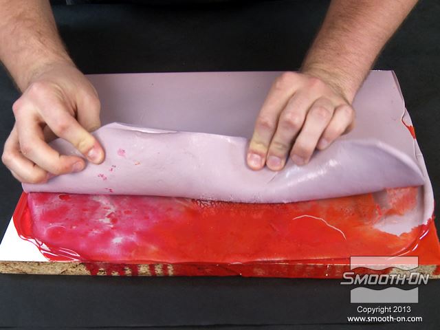 לחיצה להגדלת תמונה סוגרים את התבנית לאט ומניחים לפוליאוריתן Smooth-Cast® 60D לזרום ולמלא את כל רשת ה סוגרים את התבנית לאט ומניחים לפוליאוריתן Smooth-Cast® 60D לזרום ולמלא את כל רשת ה"ורידים" של המודל המקורי.