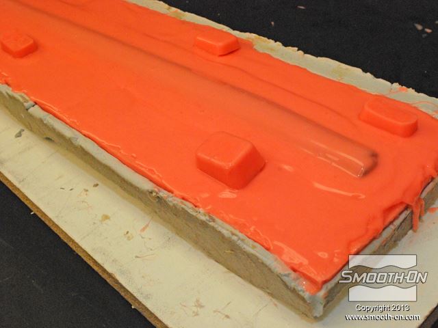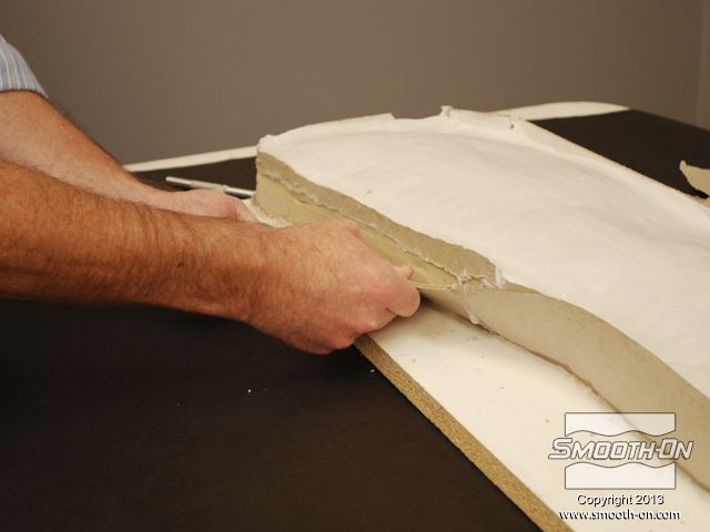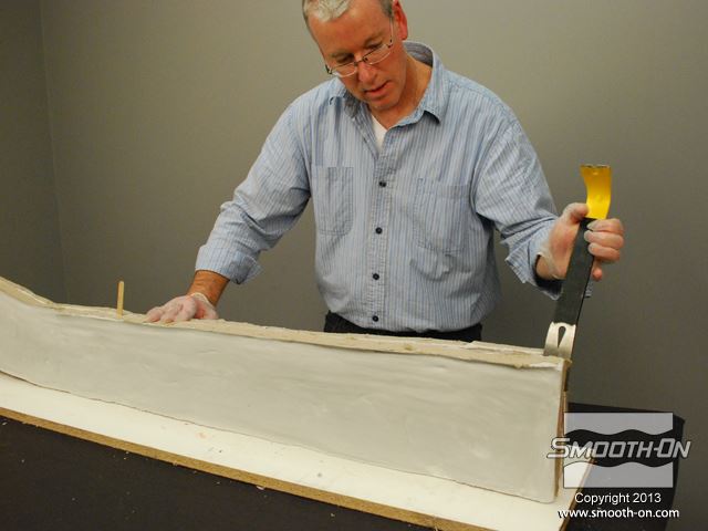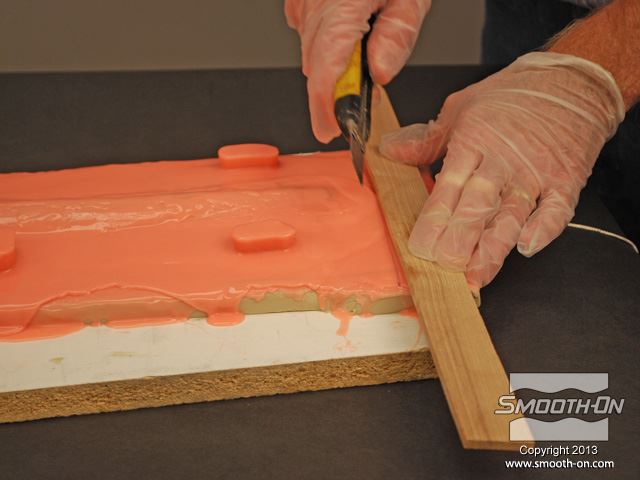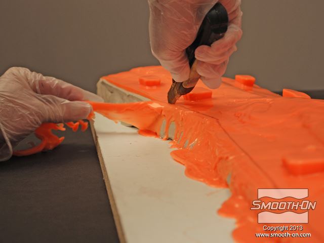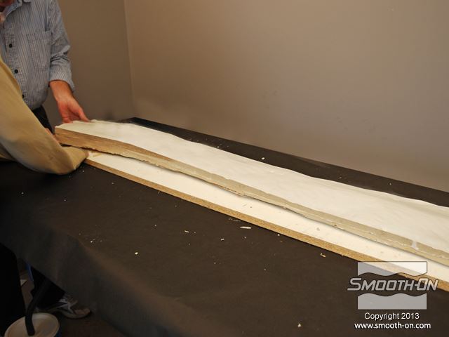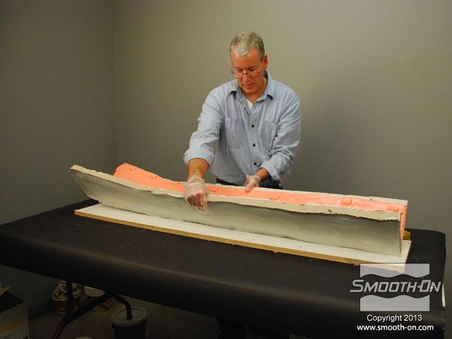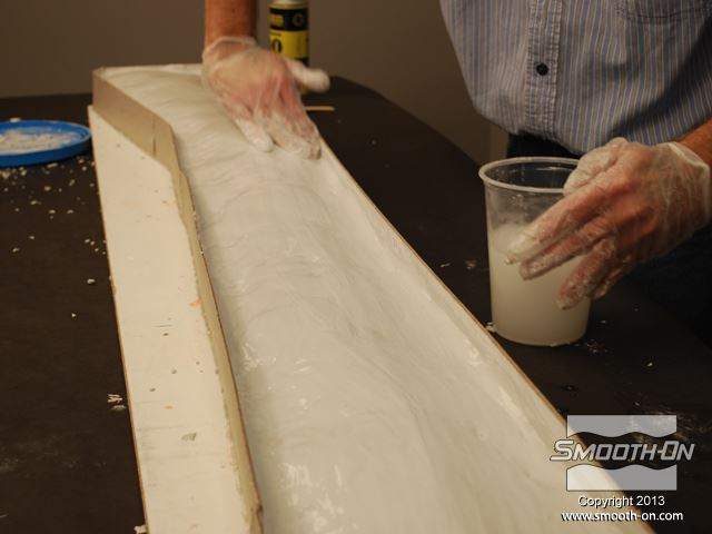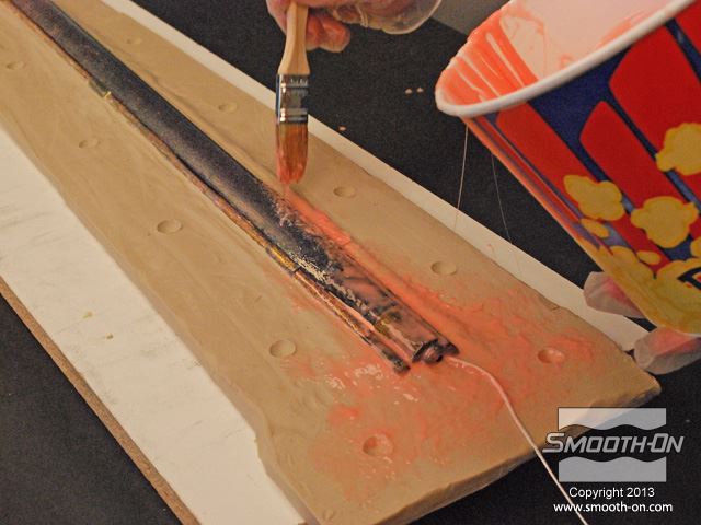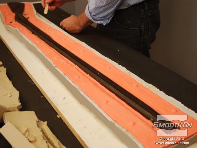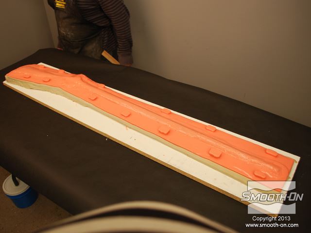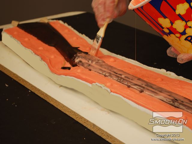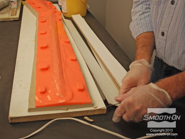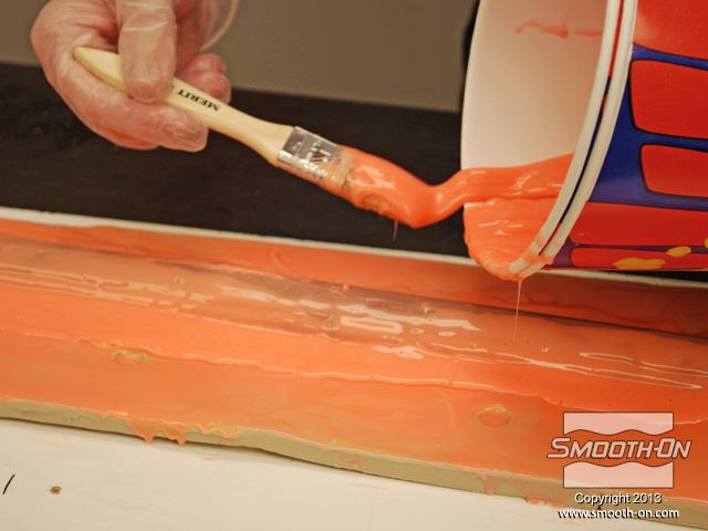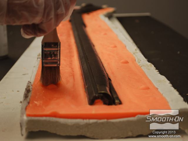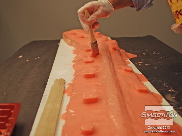 לחיצה להגדלת תמונה מוסיפים שכבה סופית של סיליקון, עכשיו ללא מעבה,  על כל אורך התבנית. מוסיפים שכבה סופית של סיליקון, עכשיו ללא מעבה, על כל אורך התבנית.