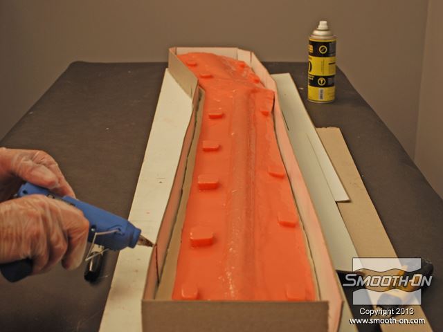 לחיצה להגדלת תמונה לאחר ששכבות הסיליקון נמרחו, שוב חותכים את הסיליקון ומתקינים את קירות הקרטון מחדש. לאחר ששכבות הסיליקון נמרחו, שוב חותכים את הסיליקון ומתקינים את קירות הקרטון מחדש.