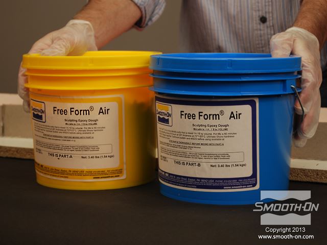 לחיצה להגדלת תמונה מודדים כמויות שוות לפי נפח של חלקי האפוקסי Free Form®Air. מודדים כמויות שוות לפי נפח של חלקי האפוקסי Free Form®Air.