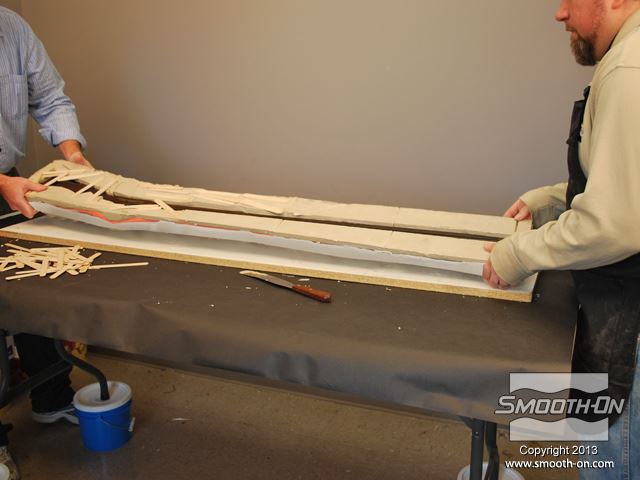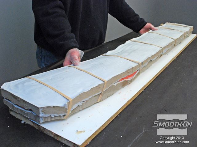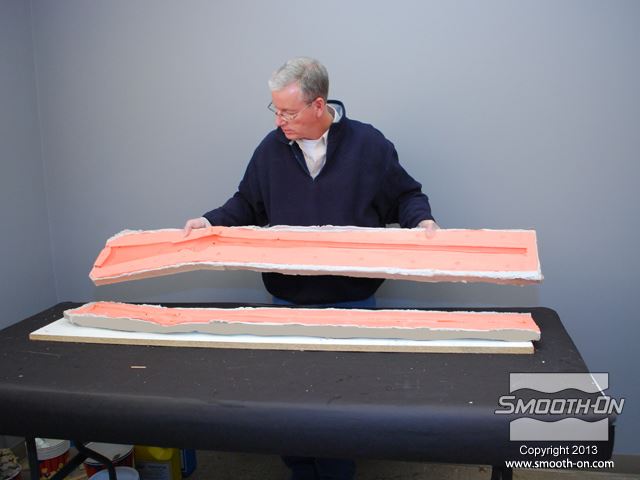 לחיצה להגדלת תמונה מניחים לחצי מעטפת התמיכה השני להתמצק במשך הלילה. לאחר מכן, מורידים את הצדדים ומרימים את המודל מהלוח כך שיהיה אפשר לפתוח את התבנית. מניחים לחצי מעטפת התמיכה השני להתמצק במשך הלילה. לאחר מכן, מורידים את הצדדים ומרימים את המודל מהלוח כך שיהיה אפשר לפתוח את התבנית.